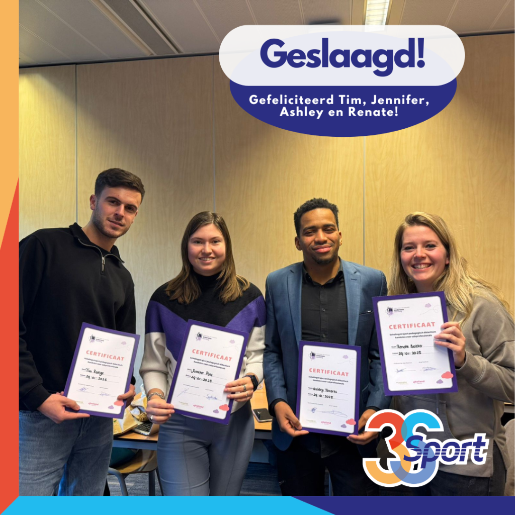 Op woensdag 29 januari was het een feestelijke dag voor vier collega’s van 3SSport. Zij hebben met succes deelgenomen aan het eerste scholingstraject van Andersom Den Haag, een traject van 20 weken waarin vakprofessionals uit verschillende disciplines samenkomen om hun rol in het basisonderwijs te versterken. Na een intensief leertraject mochten de deelnemers hun dik verdiende certificaat in ontvangst nemen!